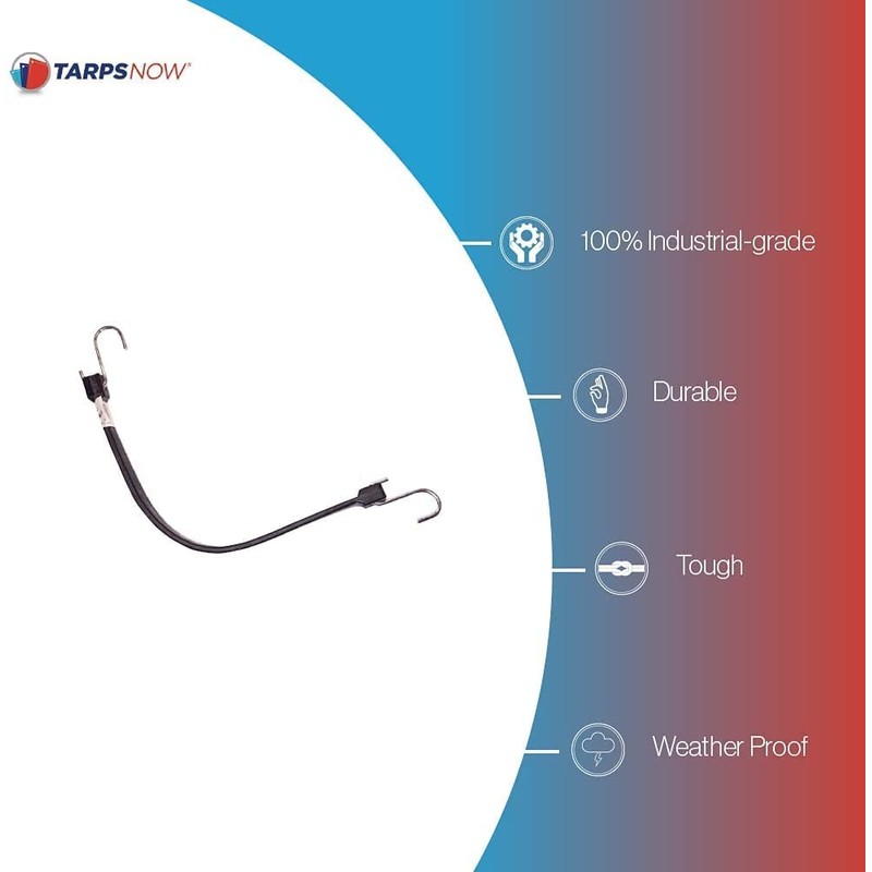 Tarps Now 31” EPDM Rubber Tarp Straps, (31 inches) - Heavy Duty Rubber Cords Bungee Straps with S Hooks for Securing Tarps, Canvas, Camping, Canopy, Cargo and Scaffolding - Black, 50 Pieces