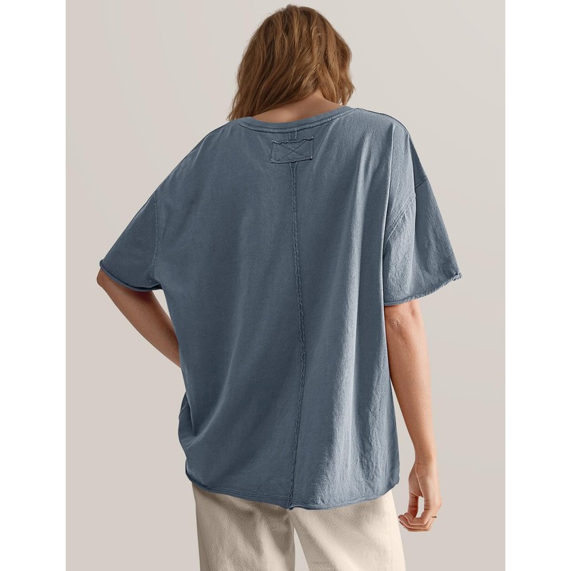 - Oversized Tshirts for Women, crew neckline, dropped shoulders, raw-edge seaming throughout. Trendy boxy tee shirts for women, slightly oversized fit, perfect for a relaxed and casual look.