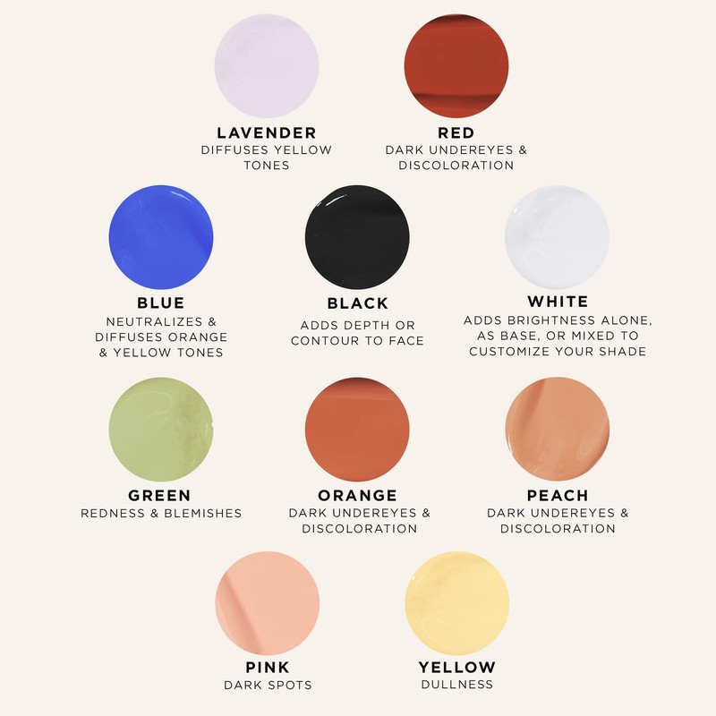 • magically cancels out appearance of blemishes, dark spots, discoloration, redness, dark undereye circles & more