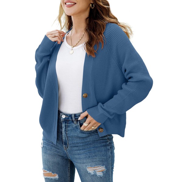 TASAMO Women’s Cozy V Neck Cardigans Button Down for a Loose, Effortless Look Blue