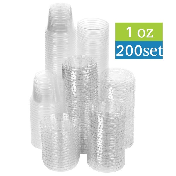 TashiBox 1 oz disposable portion cups with lids, set of 200 - jello shot cups, souffle cups, sampling cups, sauce cups