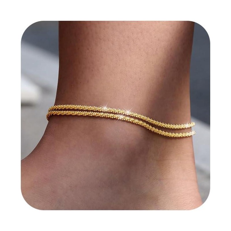 Tasiso Dainty Layered Waterproof Anklet For Women Adjustable Womens Anklet Set Stackable Figaro Beaded Cuban Link Anklets Beach For Summer:_Silver Square Dot Anklet
