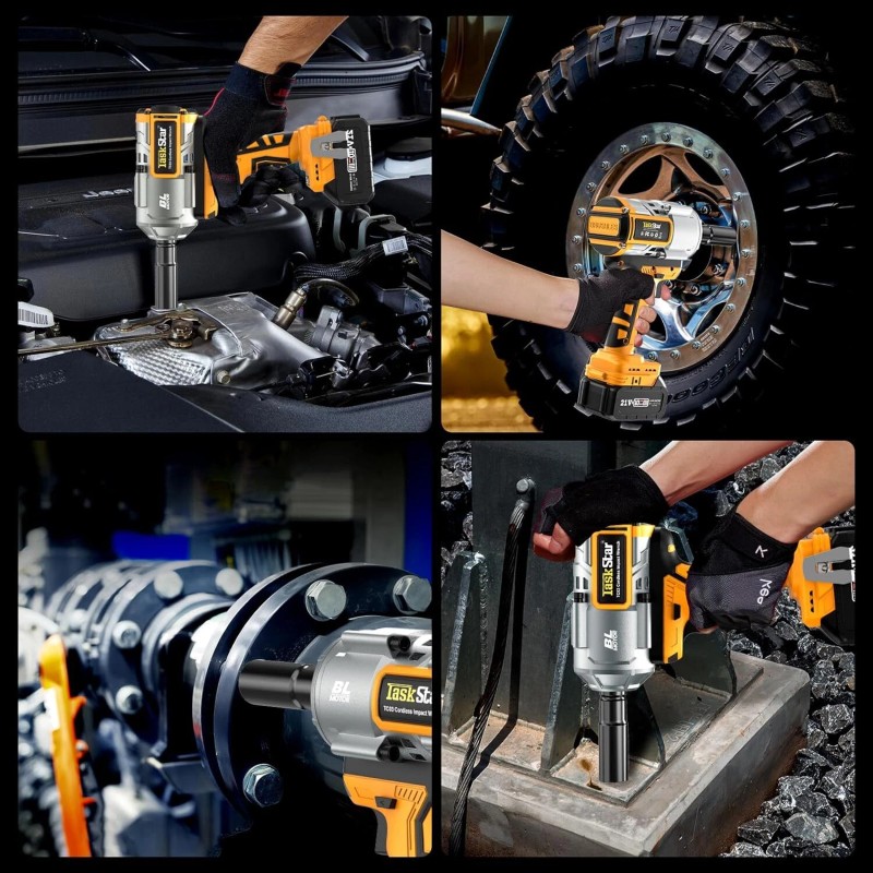 - Upgraded Motor - Taskstar Brushless motors are more efficient and longer-lasting than brushed motors. They provide more & stable torque and runtime. Cordless impact wrenches use lithium-ion batteries for portability, is an important complement to your family tool kits