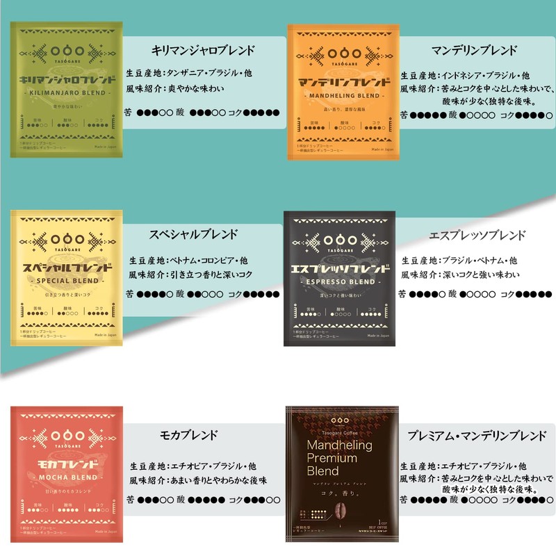 TASOGARE Drip Coffee Variety Bag, 6 Types, 20p