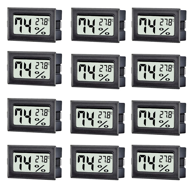 TASOGEN 12 Pack Mini Digital Hygrometer Thermometer,Indoor Temperature and Humidity Gauge Meter Monitor Celsius (℃) for Humidor,Greenhouse,Reptile Tank,Home,Jars