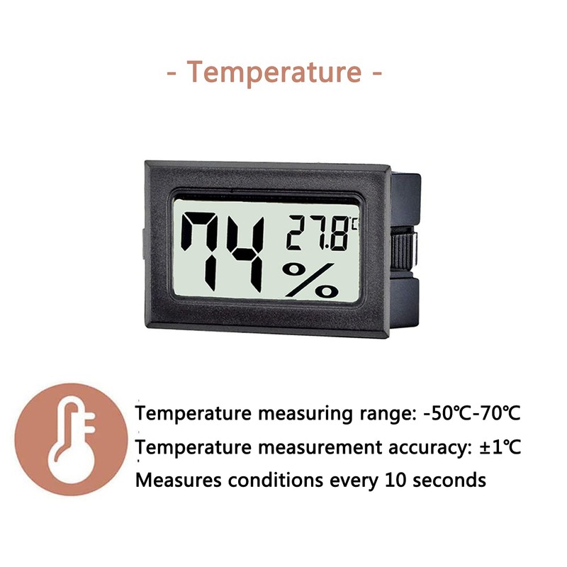 - Temperature measuring range:-50℃-70℃ ;Humidity measuring range: 10%-99%RH (Measures conditions every 10 seconds)