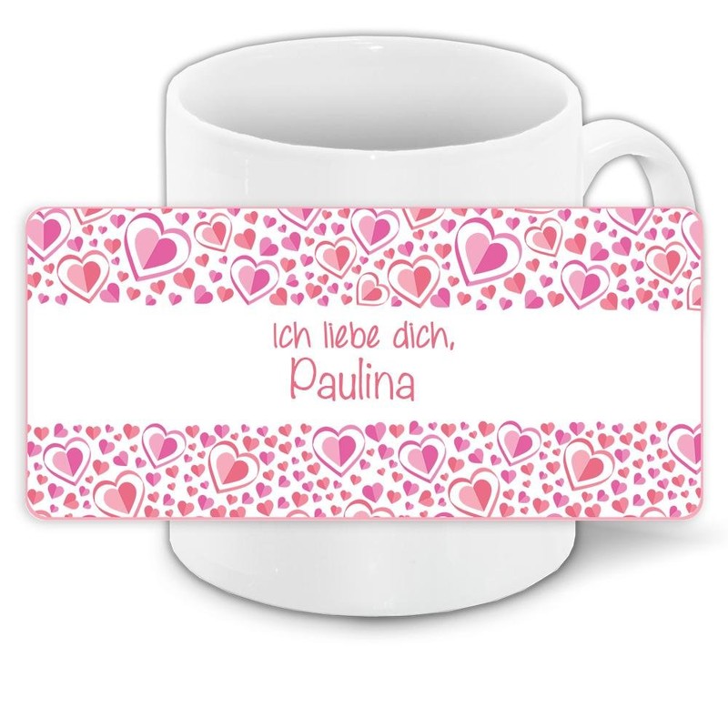 Tasse mit Namen Paulina und schönem Motiv mit rosa Herzen zum Valentinstag - Liebestasse Keramiktasse Freundschafts-Tasse