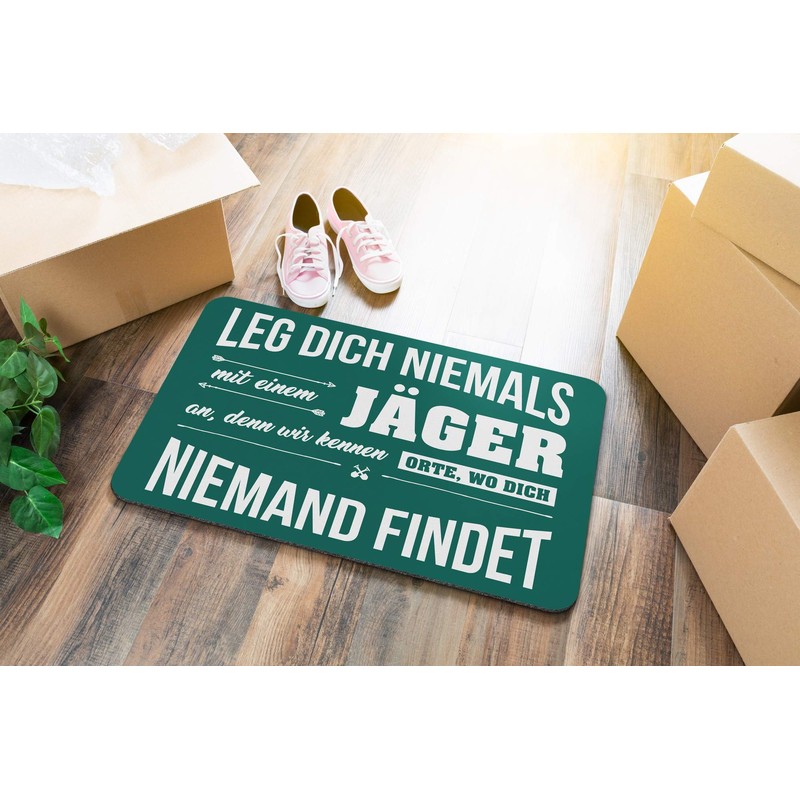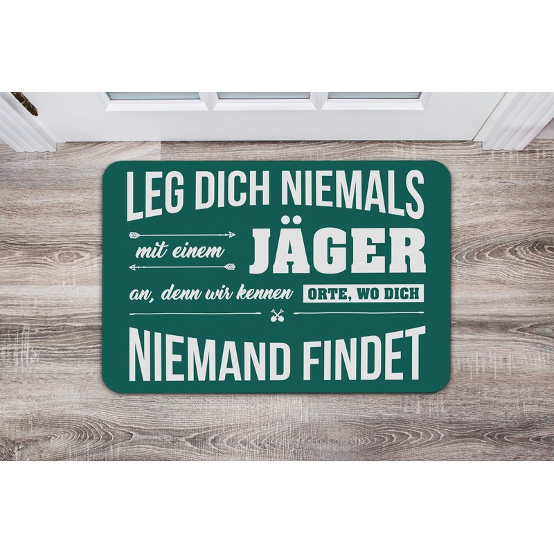 Tassenbrennerei Doormat with Saying "Leg Dich Niemals mit einem Jäger an - Fußabtreter lustig, Türmatte waschbar - Original Gift