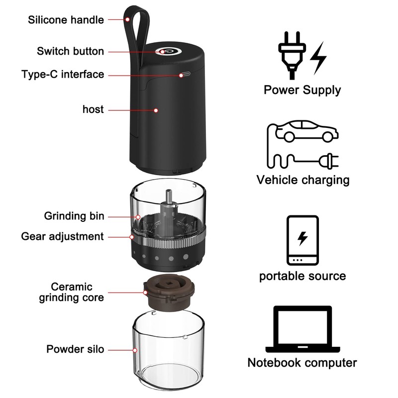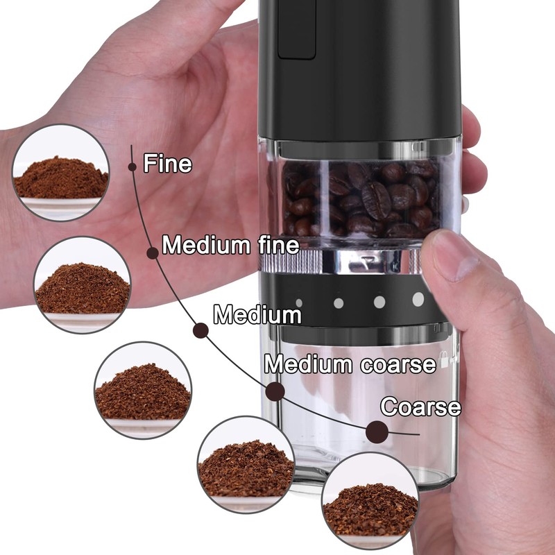 • Advanced Electric Portable Coffee Grinder: USB Rechargeable, Transparent design, visual operation, no socket, no blade crushing, just one button to open and enjoy the mellow freshly ground coffee, saving your time.