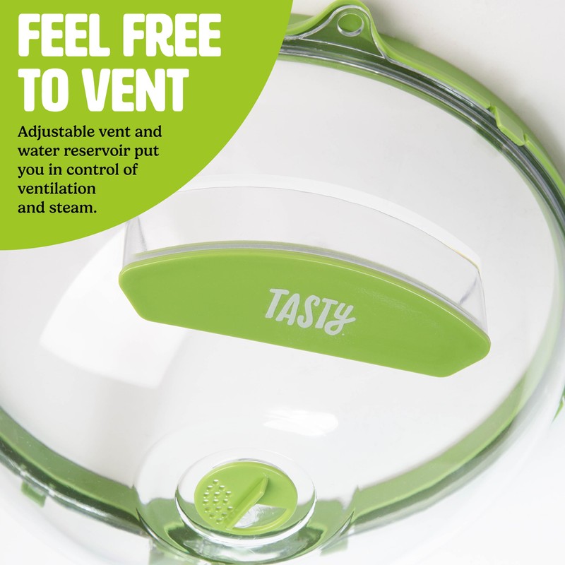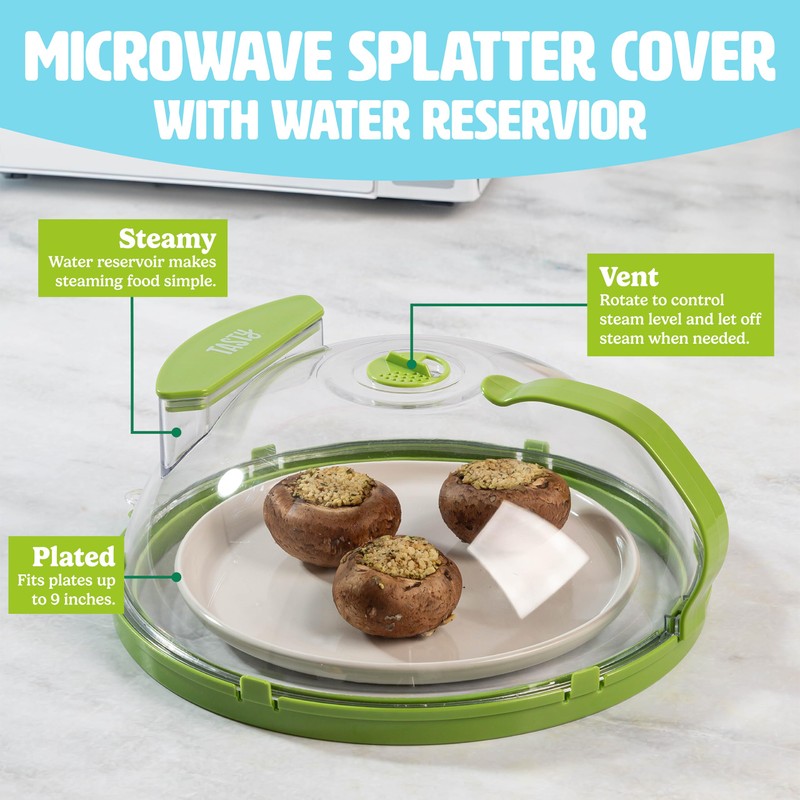 Tasty Microwave Splatter Cover with Built in Water Steamer & Reservoir, 1-Piece, Green