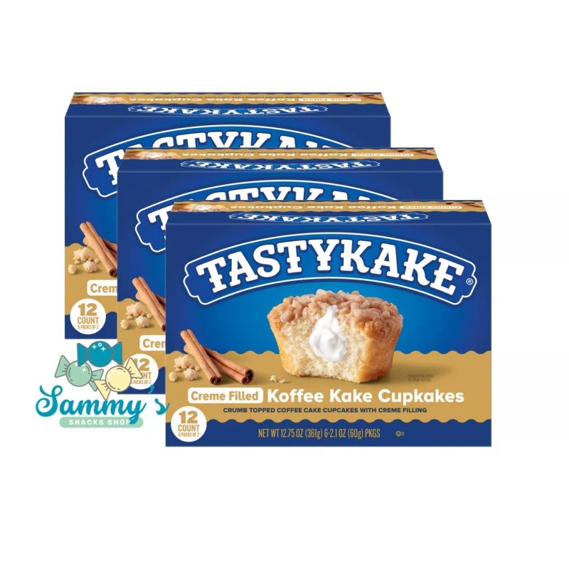 3 boxes of Tastykake Koffee Kake Cupcakes. Each box contains 6 packs of two cupcakes for a total of 12 cupcakes per box.
