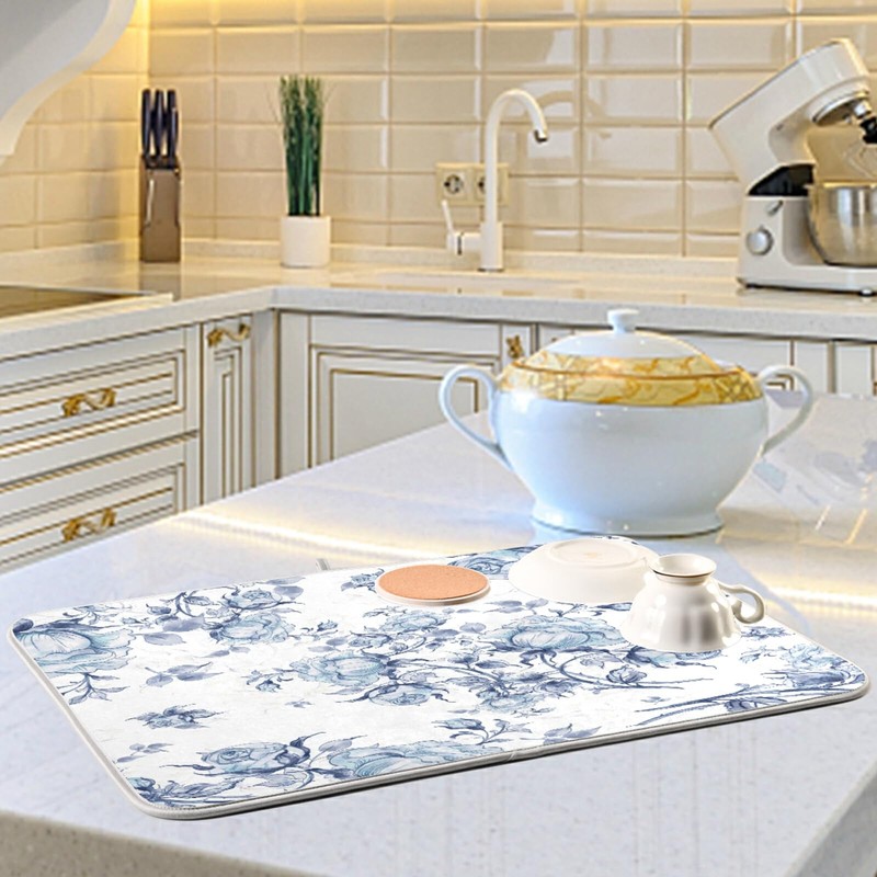 - GOOD WATER ABSORPTION: Multi-function drain drying pad for kitchen countertop, with absorbent polyester material on the surface, intermediate composite sponge material, quick water absorption, keep kitchen countertop dry and tidy