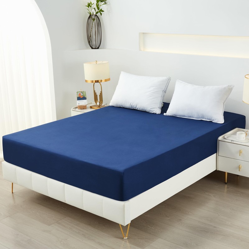 Tateufeu Bedding Twin Fitted Sheet,Deep Pocket,Soft Microfiber,Shrinkage and Fade Resistant,Easy Care,1 Fitted Sheet Only,Navy