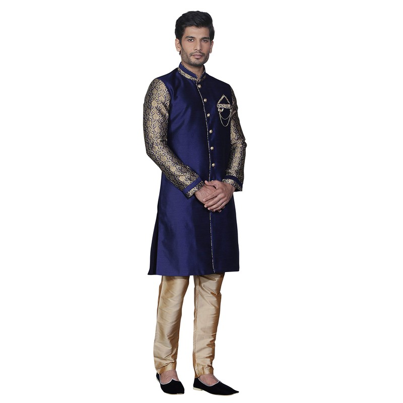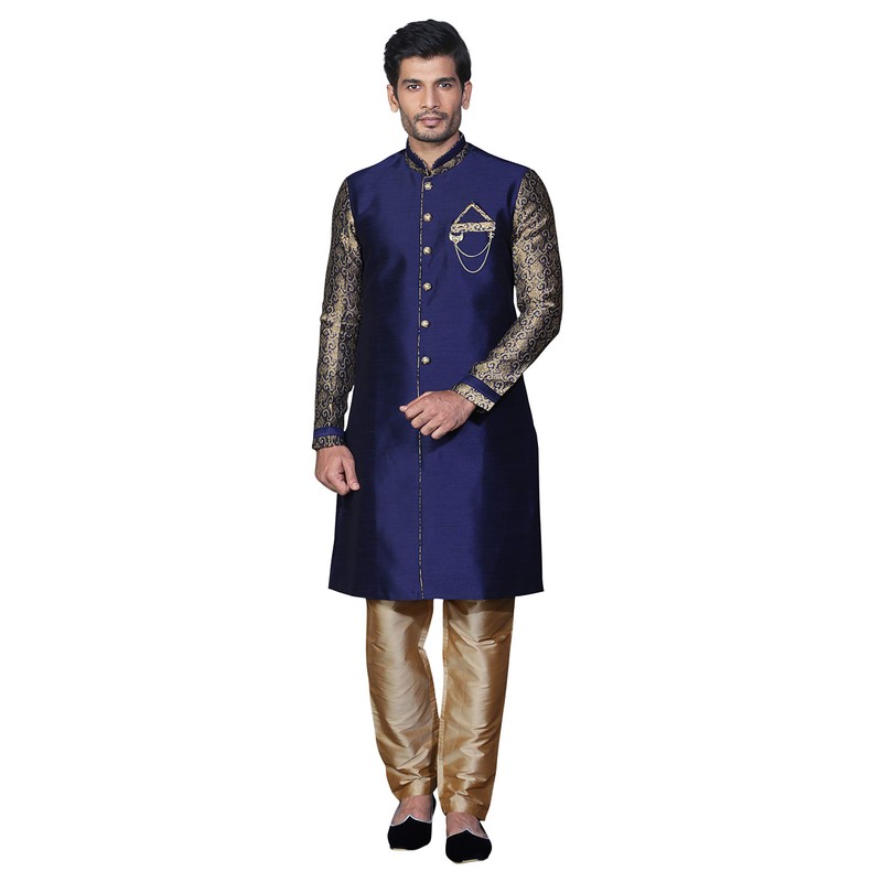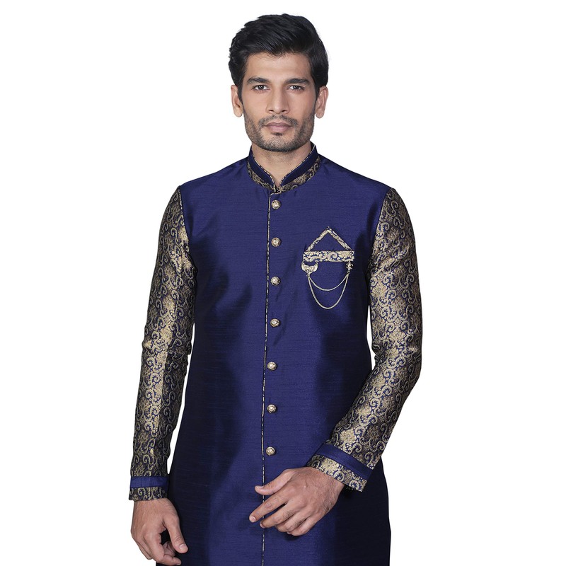 Tathastu Conjunto de pijama Sherwani Kurta para hombre, Azul / Patchwork, 40