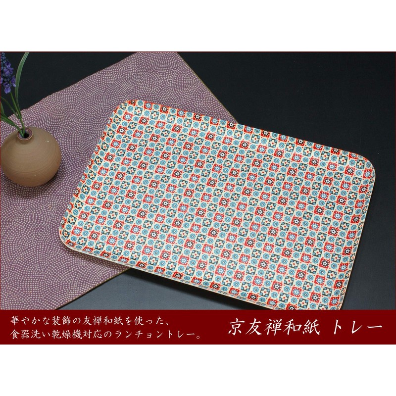 • Dishwasher safe placemat shaped tray with ornate decoration "Kyoyuzen Washi" This tray is made with Kishu lacquer ware technology that preserves the delicacy and vibrancy of traditional Yuzen-dyed washi paper. This tray is made with a peaceful Japanese accent while taking advantage of the warmth and elegant texture of washi paper. It can be used for everyday use, as well as for entertaining important customers or as a souvenir in Japan