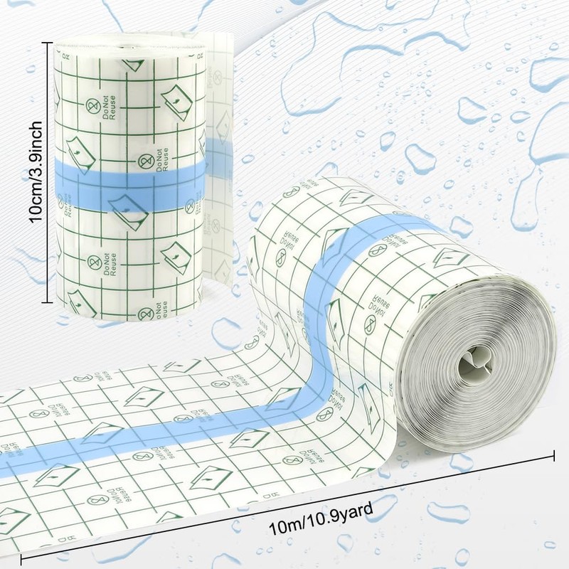 - PACKAGE CONTENT: This waterproof bandages for swimming includes 1 roll of 3.9 inches wide, 10.9 yard long bandage, you can cut the right size according to your actual needs, waterproof tape for skin wrapped into a roll, easy to store and carry, the length of the bandage can meet the needs of you and your family's daily use, waterproof medical tape is the essential daily use of the family tools