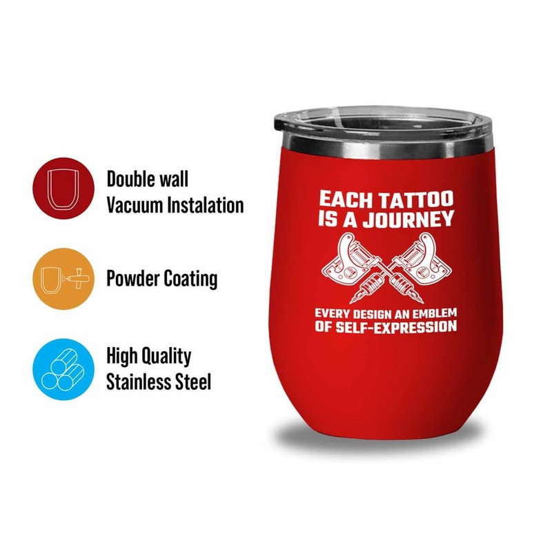 Tattoo Artist Red Edition Wine Tumbler 12oz - Each tattoo is a journey - Tattoo Gifts Tipping Skin Deep Ink Tattoo Lover Tattooing Tattooist