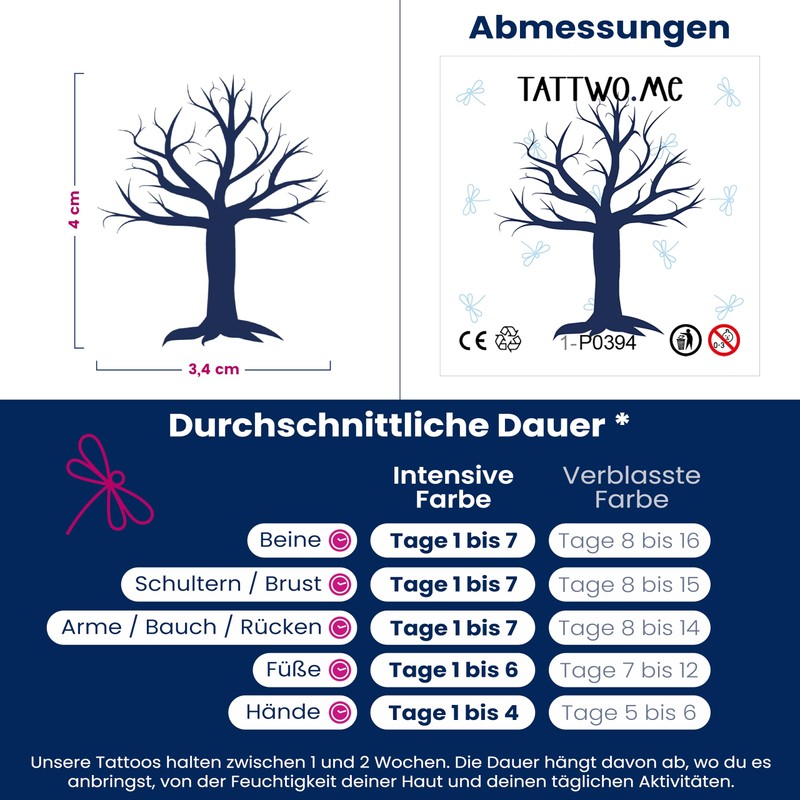 Tattwo.me Temporary Tattoos for Adults and Children 2 Weeks Waterproof - Tree - Vegetable Ink - EU Cosmetic Certificate - (P0394)