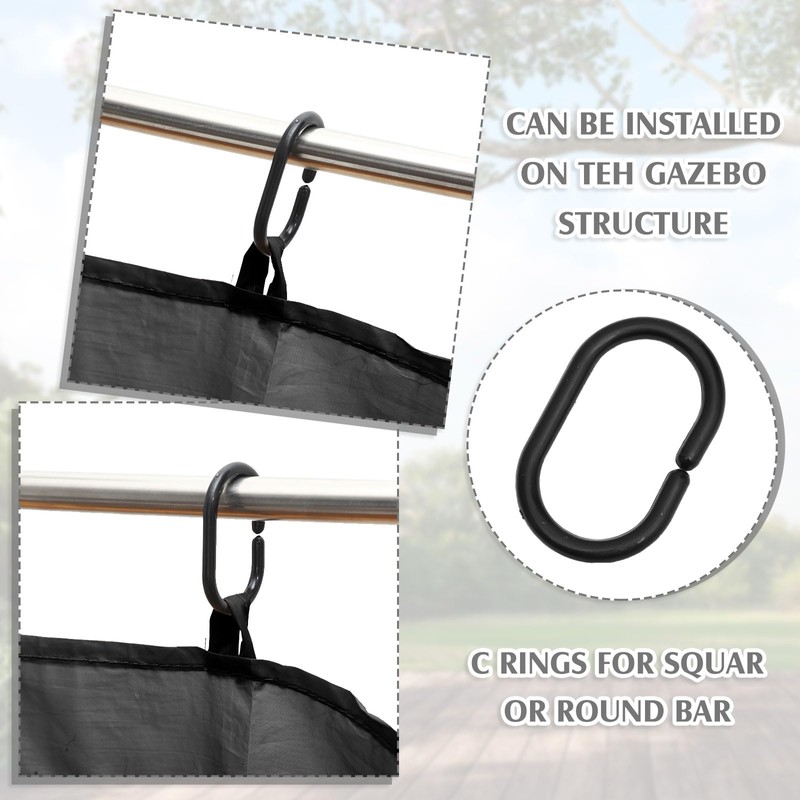 • Easy to Install: you just need to connect the clip rings to the top of the porch mosquito netting, then attach those clip rings to the frames of your gazebo, the whole installation process is easy and convenient, you can finish it in minutes