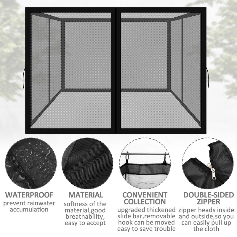 Tatuo Universal Replacement Mosquito Netting for Patio Gazebo Mosquito Net Camping 4 Panel Mosquito Net Gazebo Canopy Replacement Patio Mosquito Netting with Zipper for Porch (Black,10x10 ft)