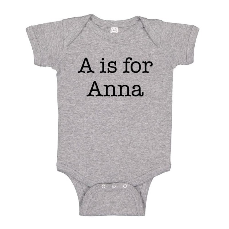 - A is for Anna! This fun design makes a great gift for you or your friend’s little one.