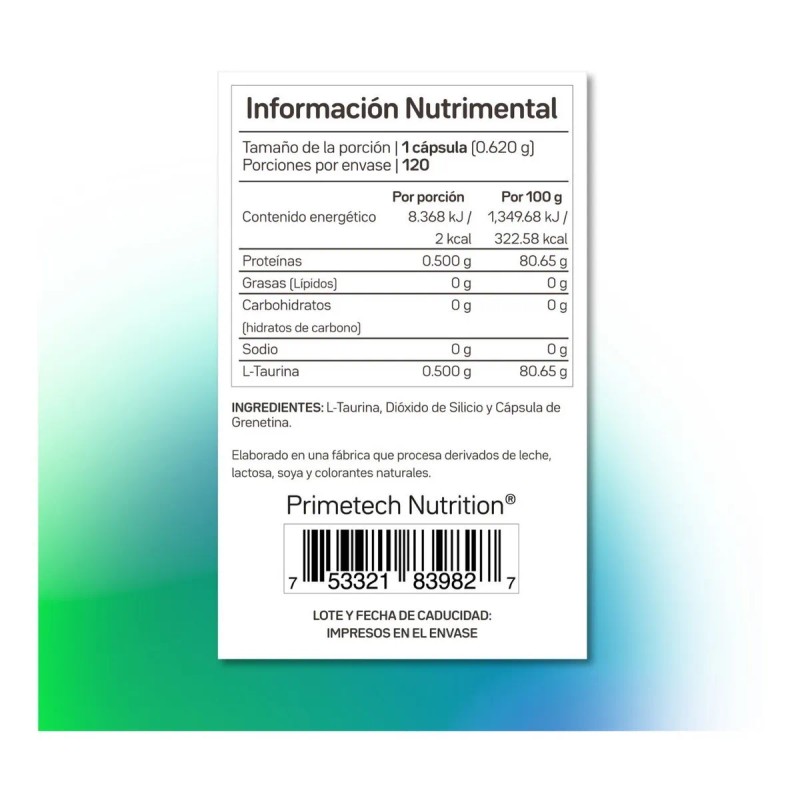 Taurina Suplemento Primetech 120 Cáps Con 500 Mg