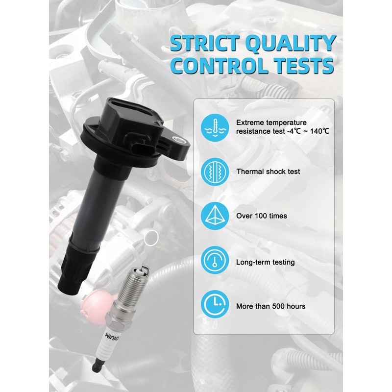 • ❇️【STRICT QUALITY CONTROL】Engineered and tested to match or exceed OE for spark energy output, impedance and durability. Manufactured in TS16949 certified facilities, 100% function and leakage tested.