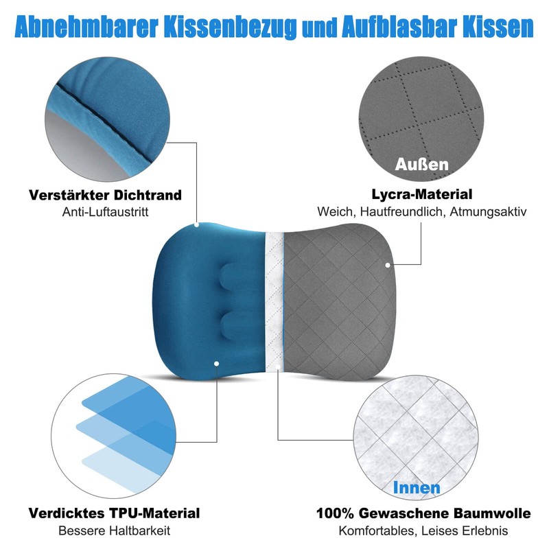 - Relieve fatigue and sleep well: Our inflatable camping pillow is ergonomically designed and supports the natural curvature of the spine to avoid stiff neck and back pain. Whether you sleep on your back or on your side, it fits your face and neck perfectly and relieves travel fatigue to provide you with a restful sleep.
