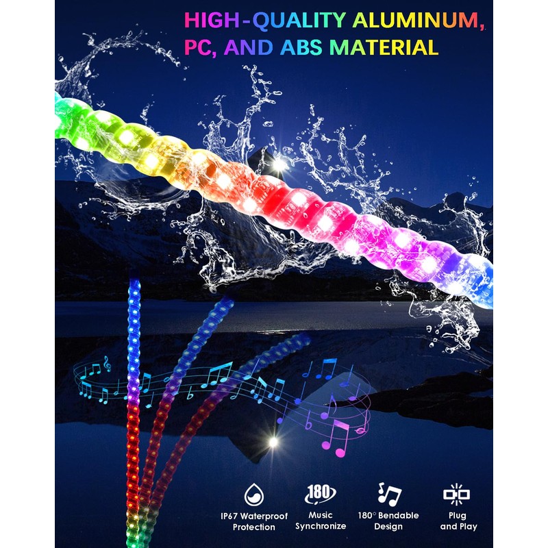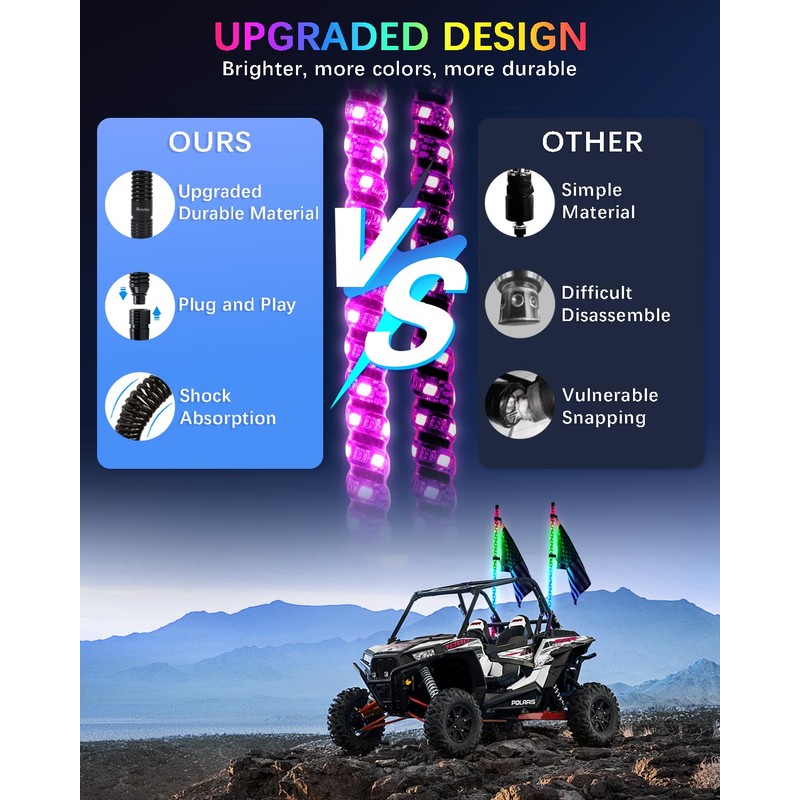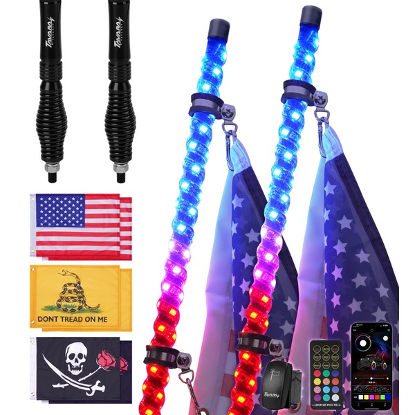 Tavaray 2PCS 4FT Whip Lights with Spring Base, LED Whip Lights with App & Remote Control, Waterproof 360° Spiral Chasing Lighted Whips w/Rocker Switch for UTV, ATV, SXS, Polaris RZR