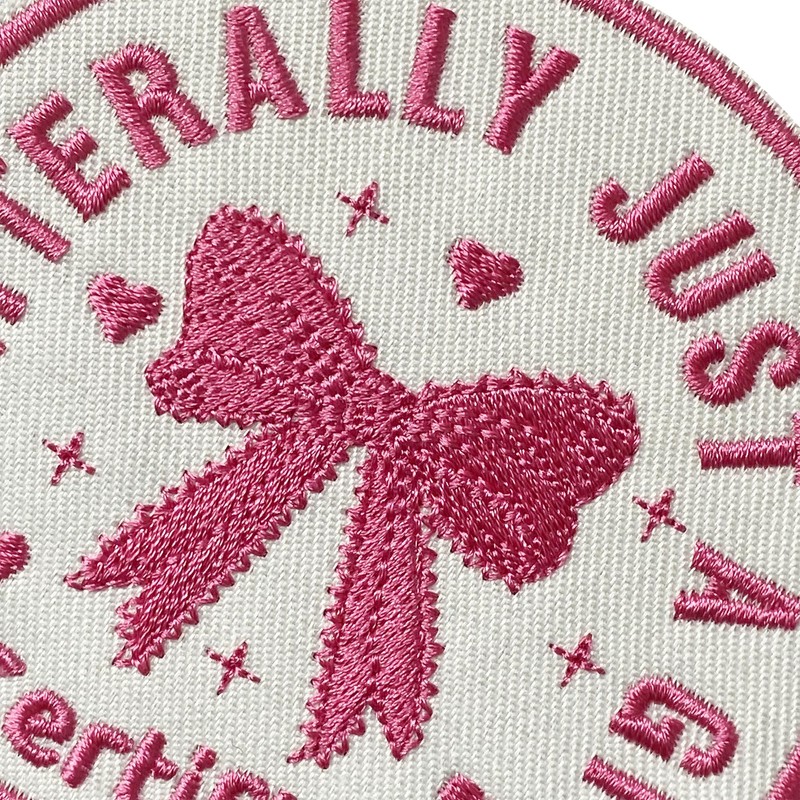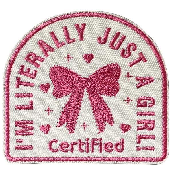 Tavashome Certified I'm Literally Just A Girl Embroidered Iron on Sew on Patches, 3.15" x 3.34" Sized, Pink Bow Tie Applique Patches for Hats Clothes Backpack Bags Dog Harness Collar Vests