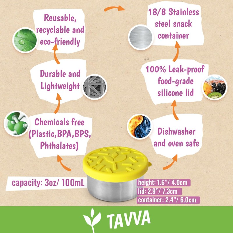 TAVVA 4X3oz Stainless Steel Mini Containers with Lids - Stainless Steel Food Storage, Small Containers for Lunch Boxes