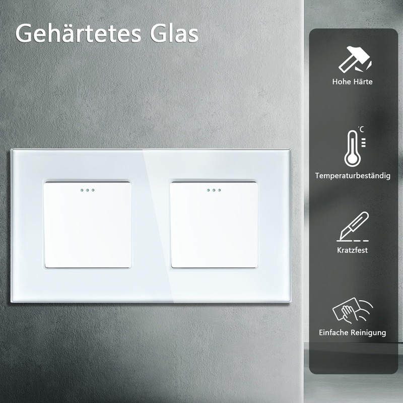 TAWOIA Light Switch Single 2-Way with Single 2-Way Double Switch 86 x 157 mm Flush-Mounted Button Switch White Light Switch Double