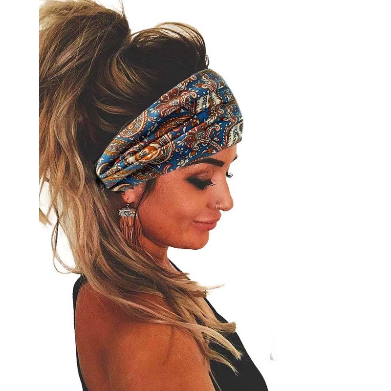 Tayel 3 piezas Boho Bandeau diademas anchas con estampado floral para el pelo, bufanda, turbante elástico grueso, bandas elásticas para la cabeza para mujeres y niñas (103 104 105)