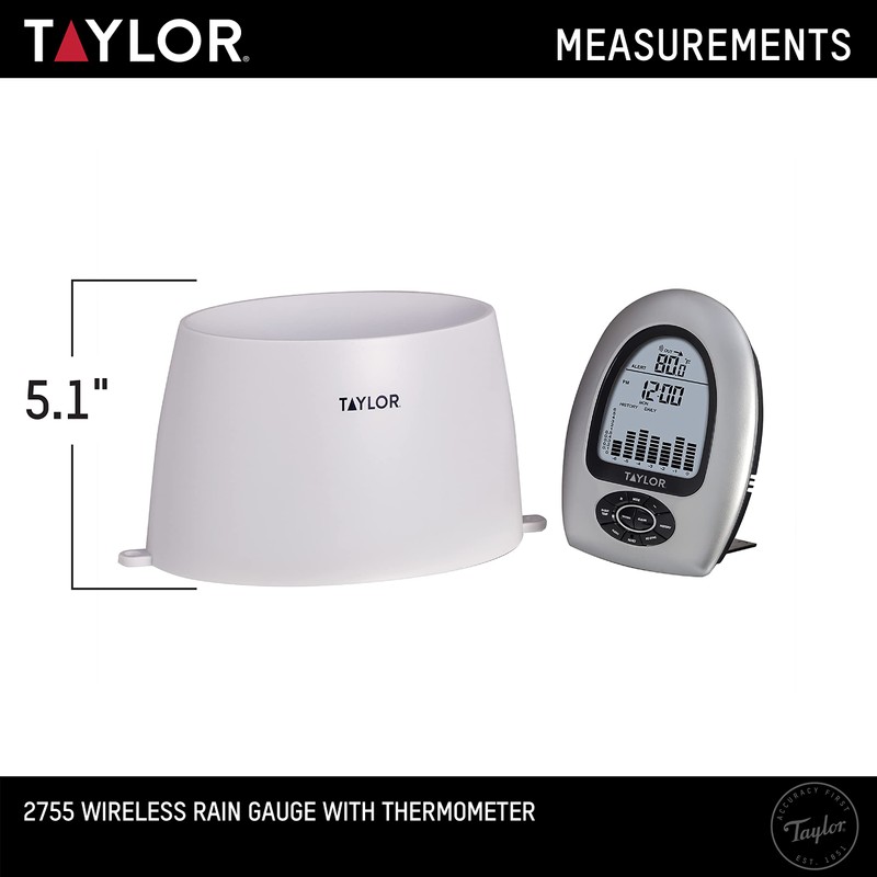 Taylor Wireless Digital Rain Gauge and Thermometer, Measure and Monitor Preci...