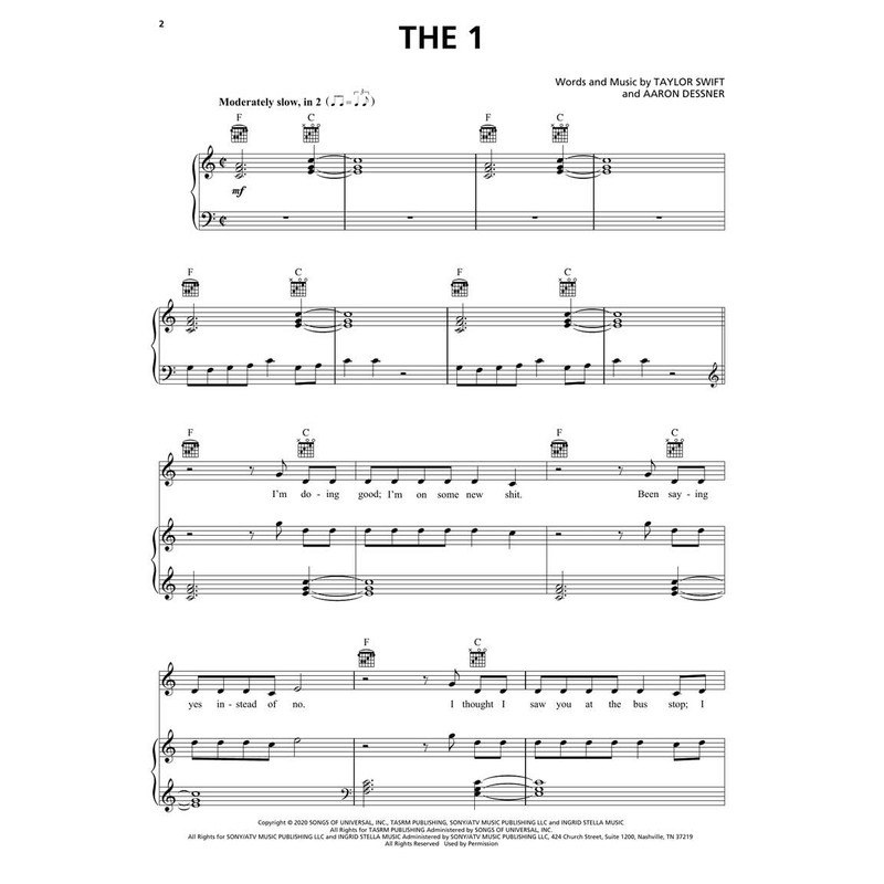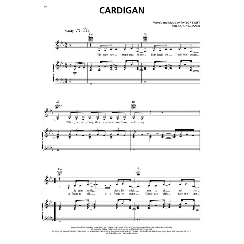 Taylor Swift - Folklore: Piano/Vocal/Guitar Songbook