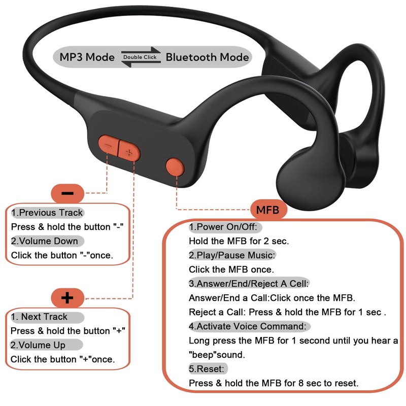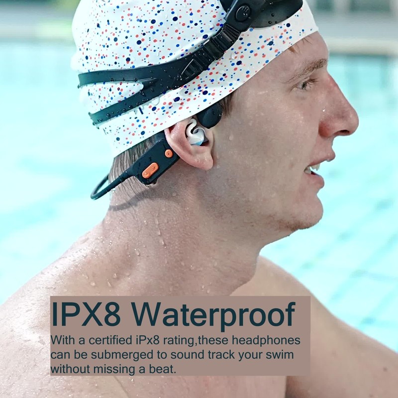 - [Skin-Friendly Material] This Swimming Headphones uses liquid silicone which offers comfortable touch. Sweat and water resistant feature and flexible titanium alloy material make this open-ear headphone suitable for running and multiple fitness scenarios. Lighter weight, less pressure, enjoy music anywhere!