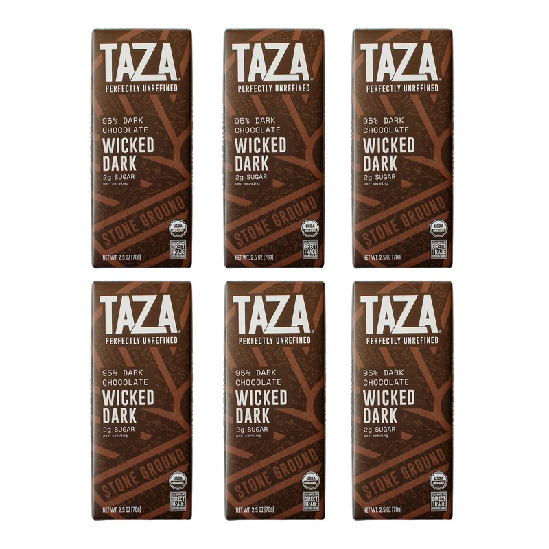 Taza Chocolate Organic Amaze Bar 95% Stone Ground, Wicked Dark, 2.5 Ounce (6 Count), Vegan