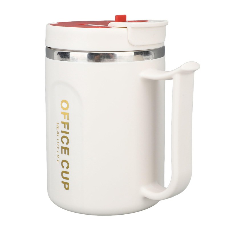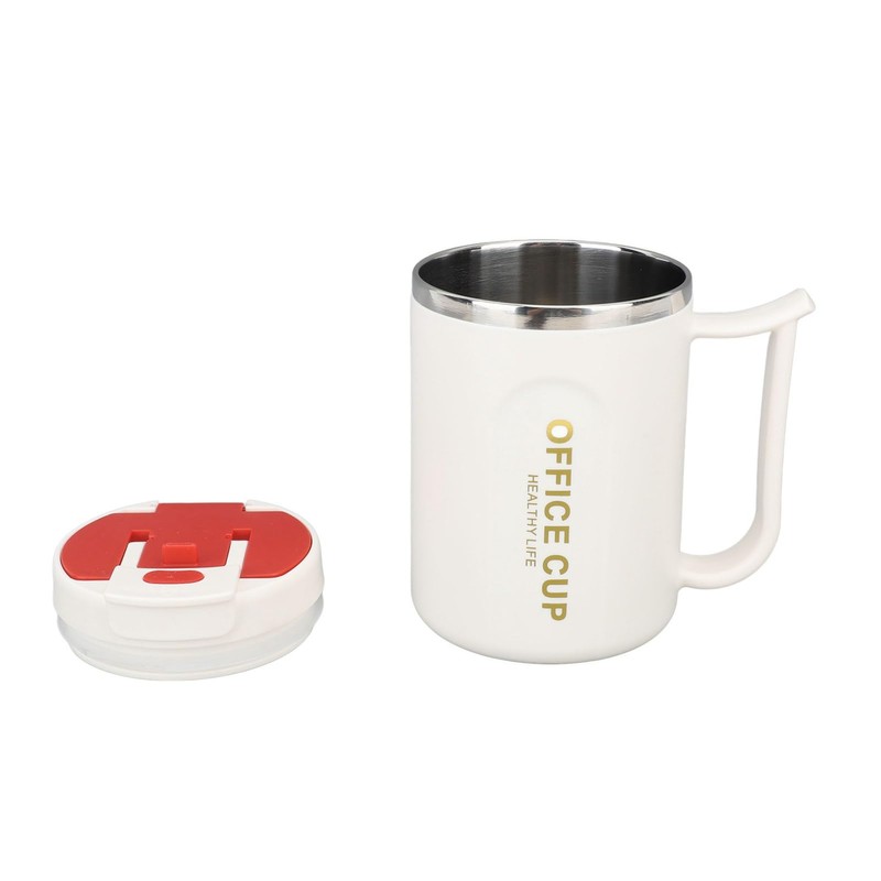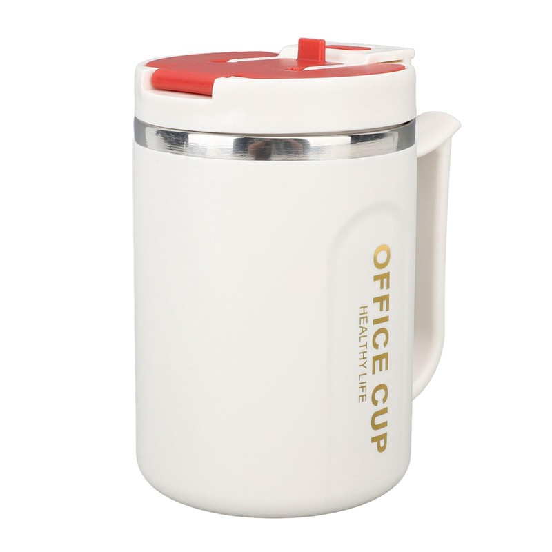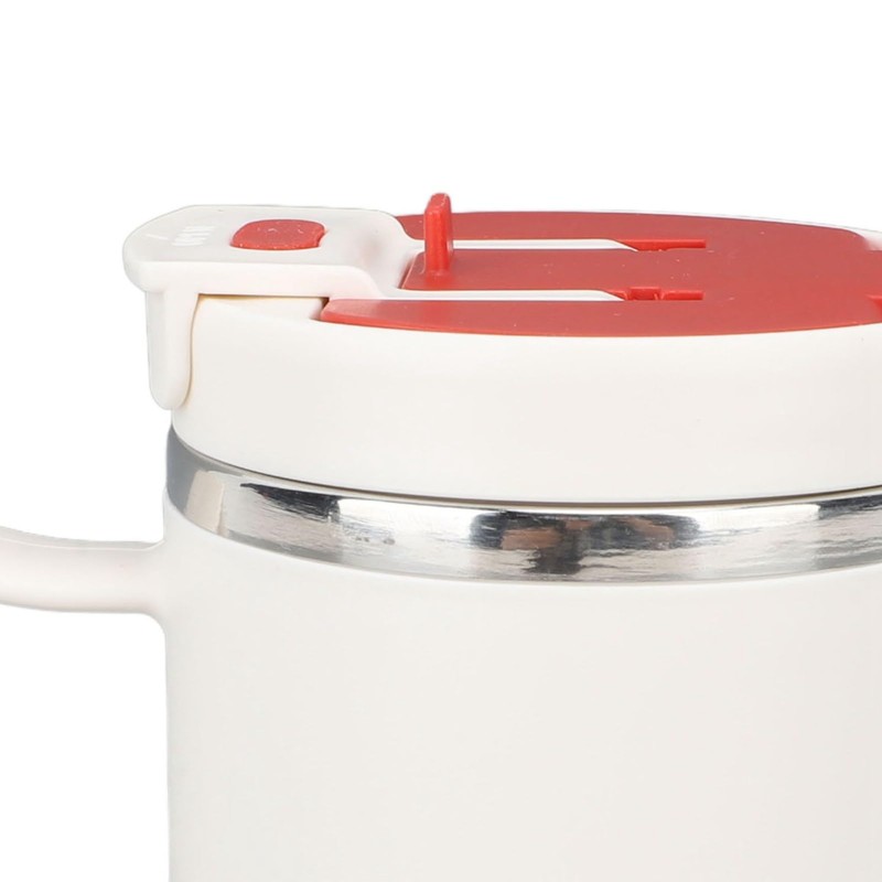 - Tapa a prueba de fugas: la taza de café aislada con asa garantiza un sellado seguro y a prueba de fugas, lo que le permite llevar su taza con confianza dondequiera que vaya.