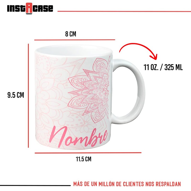 - Tu compra incluye: 1 Taza Mandalas Rosa Personalizada con tu nombre