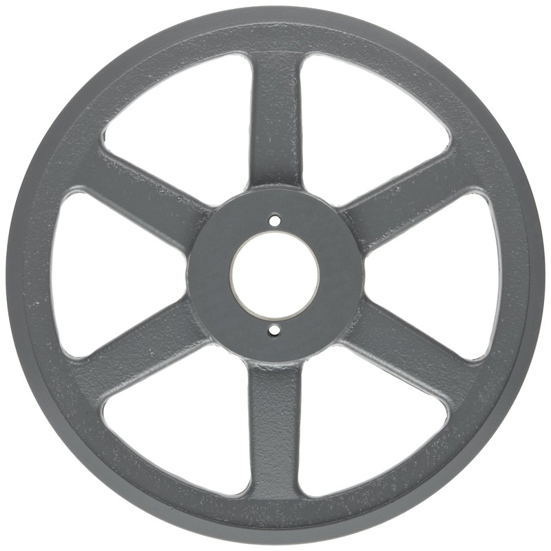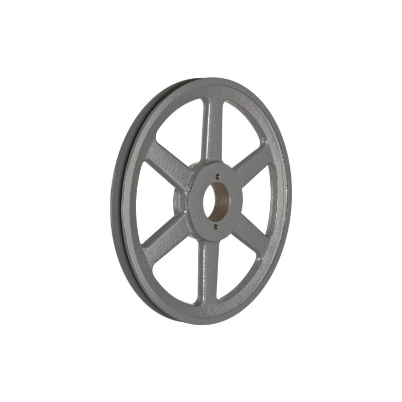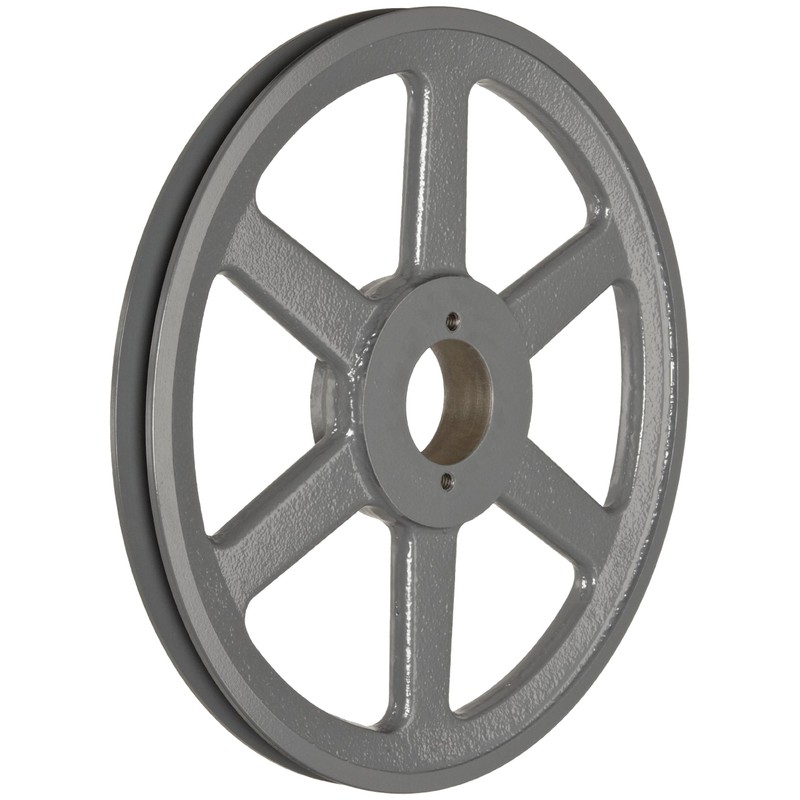 This TB Woods QT bushed V-belt sheave with an A belt section is made of cast iron and comes with one groove. It is a classical V-belt sheave that fits a variety of widely available, classical profile V-belts suitable for use in many existing power transmission drives. This pulley is made of cast iron for resistance to wear, corrosion, and galling. It has an A cross section and one groove for use with single belts. V-belt pulleys (sheaves) are used in a wide range of mechanical and electronic drives, including HVAC units, farm machinery, food processing equipment, and home appliances, among others.