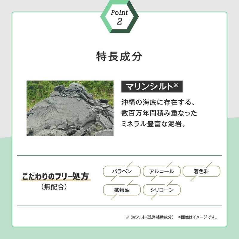 ・ミネラル豊富な泥岩のマリンシルト(※1)配合。においの気になる皮脂や毛穴の汚れを吸着。