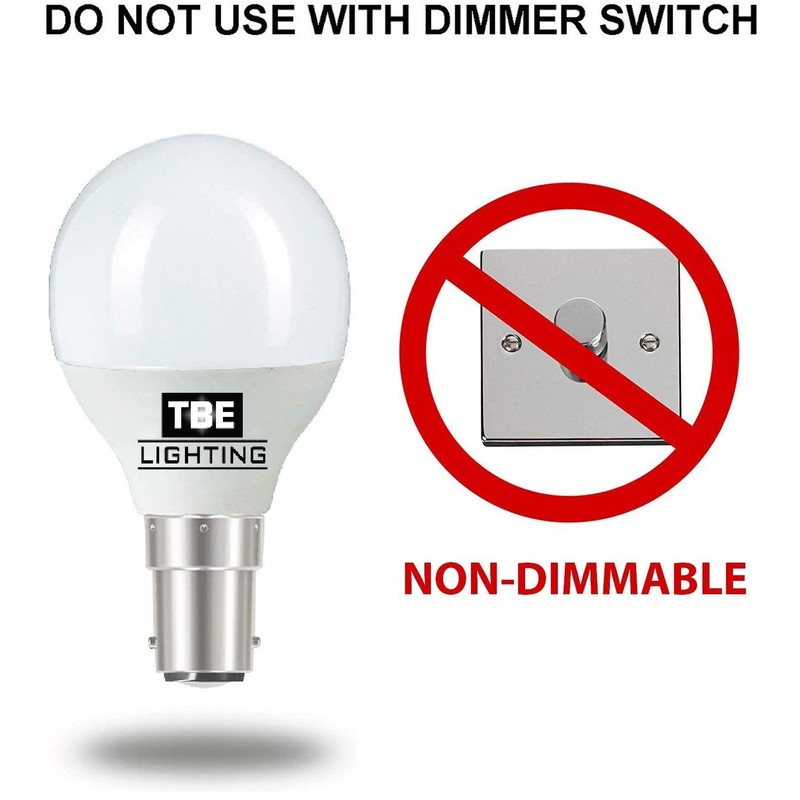 TBE Lighting LED G45 Golf Ball Bulbs - Pack of 6 - B15 / SBC/Small Bayonet Cap - 5w - Daylight White 6000K - 450 Lumens