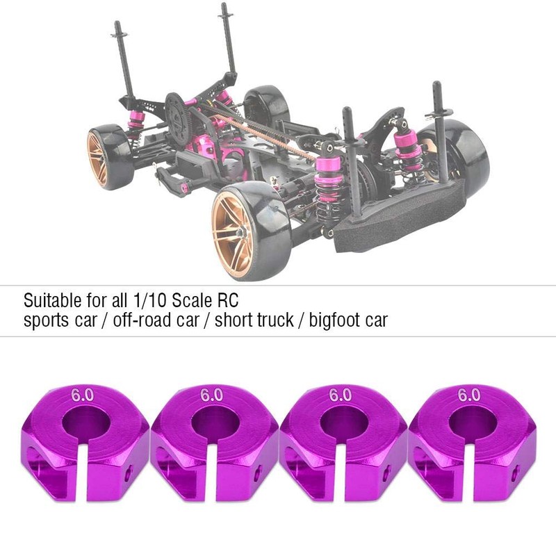 Large item: with this wheel hub adapter, the wheel does not get stuck, regardless of how tightly you tighten the wheel nut, more importantly, the wobble problem of the car is also effectively solved. Designed for: Compatible with all RC sports cars in the scale 1:10 / off-road vehicle/short truck/bigfoot.