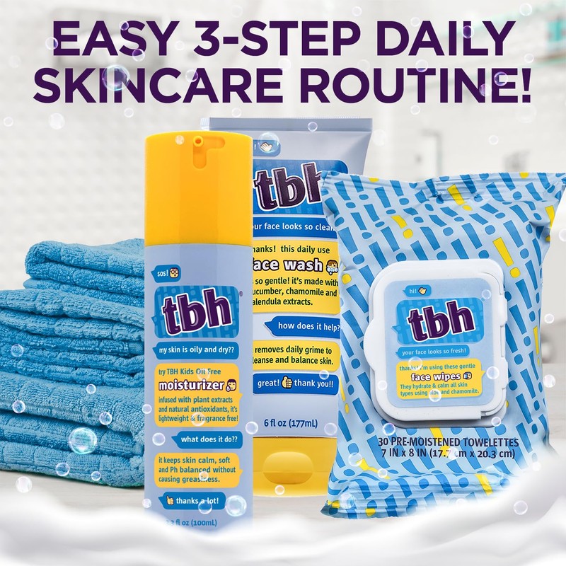 TBH Gentle Hydrating Face Moisturizer for Kids, Tweens, and Teens with Sensitive Dry Oily Skin - Shine Free Face Moisturizer for Girls and Boys - Sulfate Free, Paraben Free - Travel Friendly - 3.3 Oz