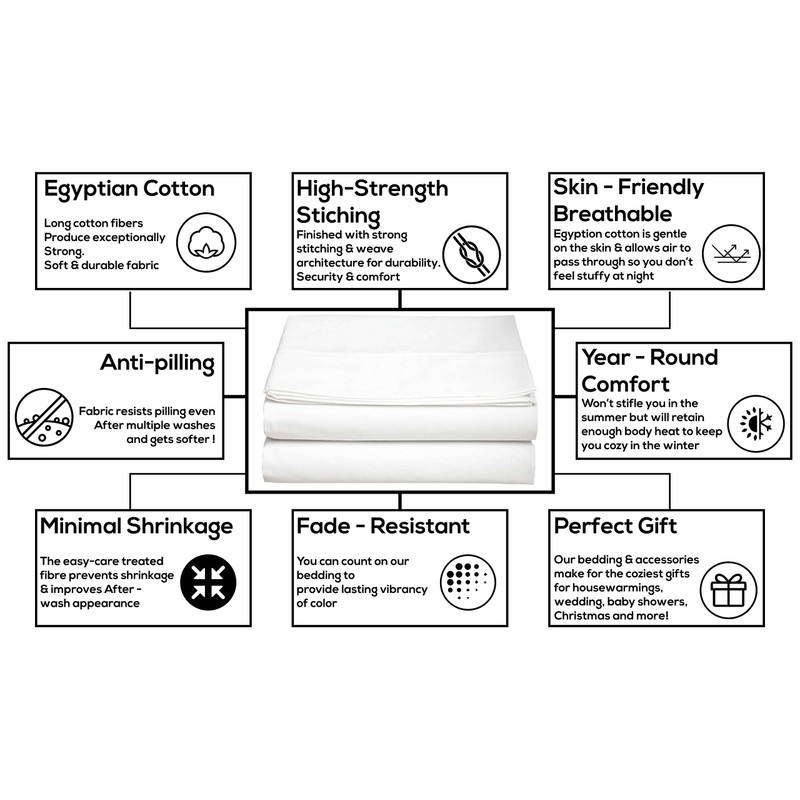 FABRIC FEATURES: Try These excellent quality 100% Egyptian cotton Flat Sheets designed to give a world class sleeping experience yet affordable. We research and create bedding that enables you to have the most comfortable sleeping experience. It is very difficult to find high quality, luxury Egyptian cotton Sheets without paying a fortune. Textile experts: the construction is 150x110 50x50 yarns, Double pick construction - it doesn't get any better. Higher thread count does not mean higher quality. it just means more yarns are twisted together and the fabric is heavier.