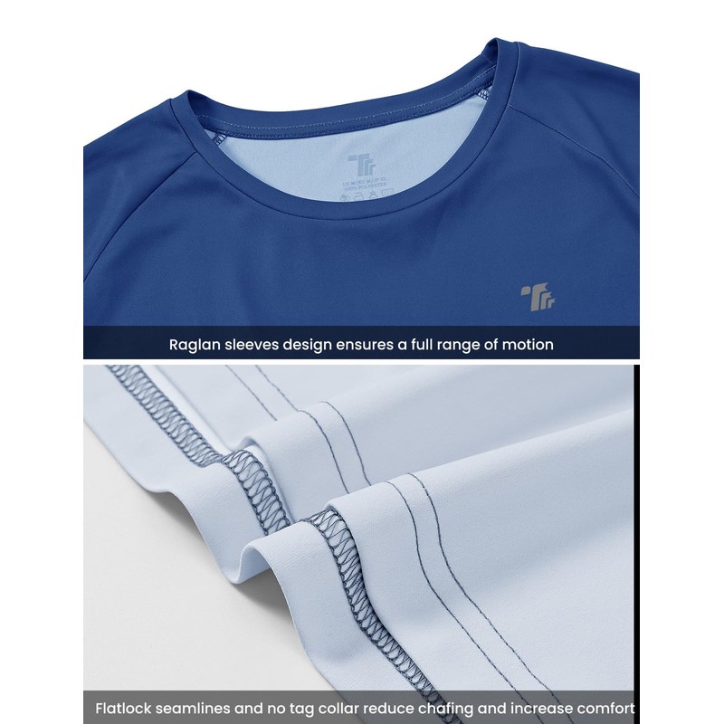 - Raglan sleeves design ensures a full range of motion and eliminate shoulder seam chafing