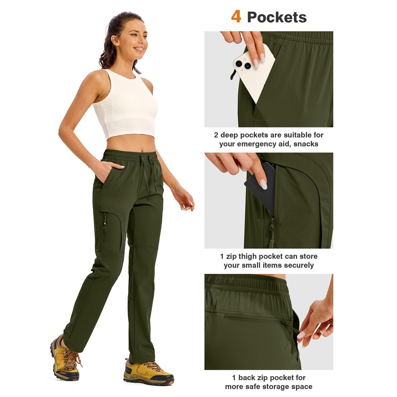 TBMPOY Women's Hiking Pants Water Resistant Lightweight Quick Dry Cargo Travel Fishing Work Camping Pant with 4 Pockets Army Green L