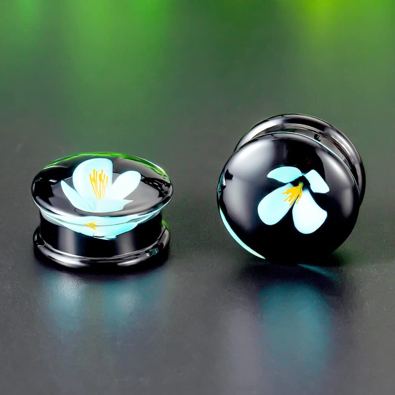 TBOSEN 1 Pair Glass Flower Style Tunnel Stud Gauges Expander Piercing Fashion Gift 0g-1 Inch in 8 mm - 25 mm
