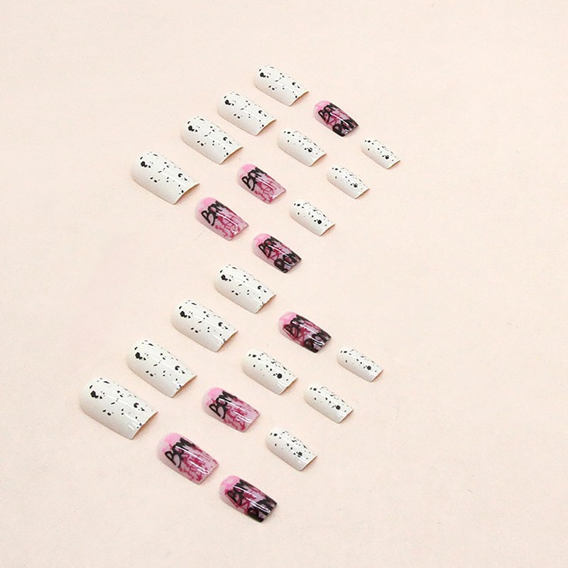 24Pcs Medium Press on Nails Square with Letter Design Halloween Red Black Acrylic Fake Nails Set for Women Manicure Decorations.