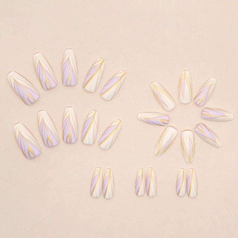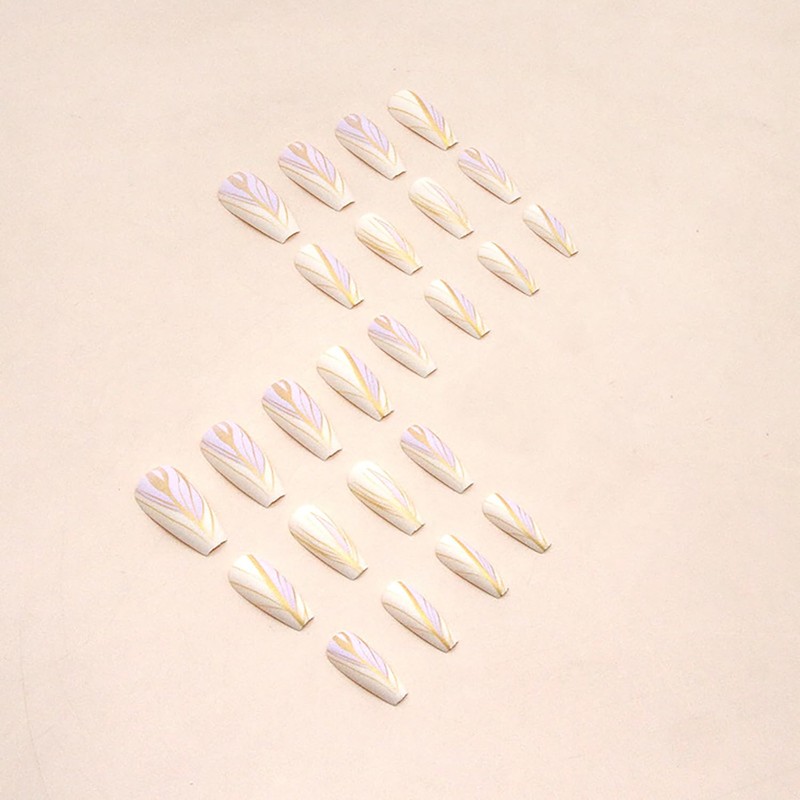 TBRZTR Press on Nails Medium, Artificial Acrylic Fake Nails with Golden Line ...